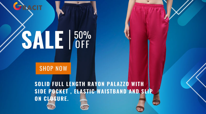 Original price Rs. 349.00 - Original price Rs. 349.00Original priceRs. 349.00Rs. 349.00 - Rs. 349.00Current price Rs. 349.00Women Maroon Viscose Rayon Parallel Pocket PalazzoIn stockMaroon Woven palazzos, Solid Opaque and wide leg fit Elasticated waistband, Length : regular, Woven 17KG viscose rayan fabric and Parallel pocket o... View full detailsOriginal price Rs. 349.00 - Original price Rs. 349.00Original priceRs. 349.00Rs. 349.00 - Rs. 349.00Current price Rs. 349.00