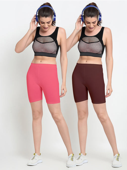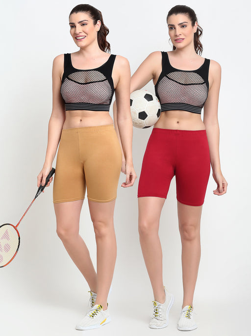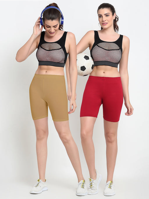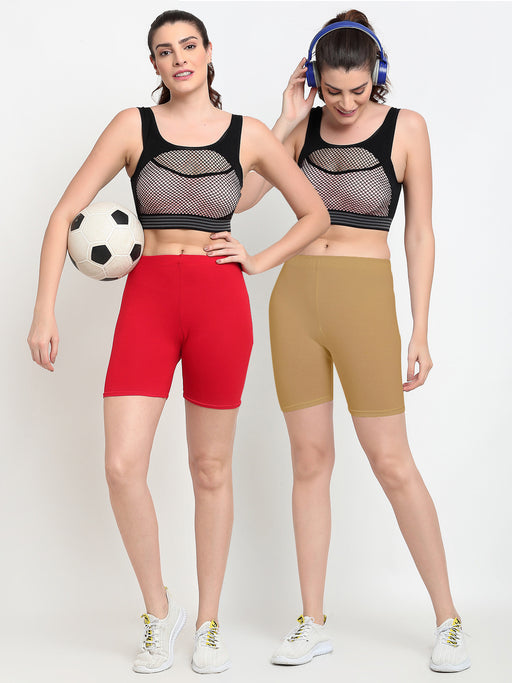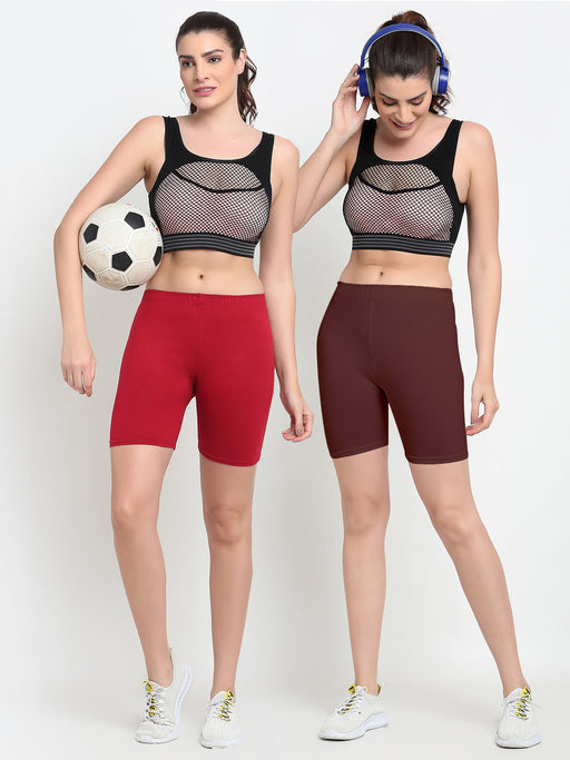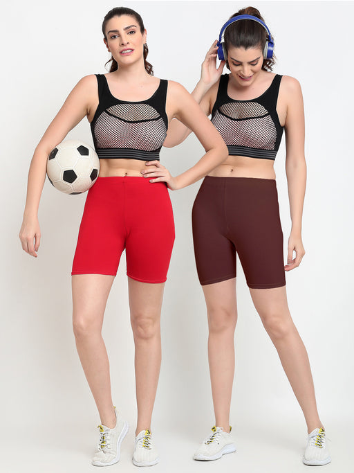 Women Red Brown Four way super commed lycra Cycling Shorts