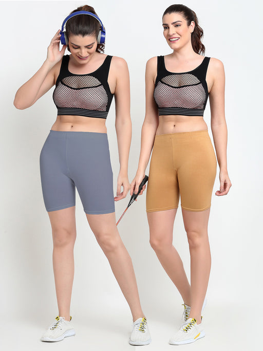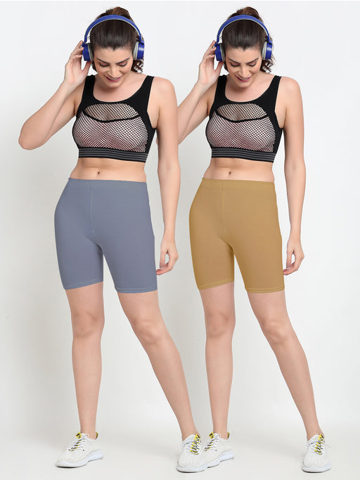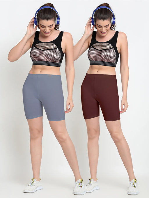 Women Grey Brown Four way super commed lycra Cycling Shorts