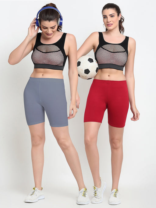 Women Grey Maroon Four way super commed lycra Cycling Shorts