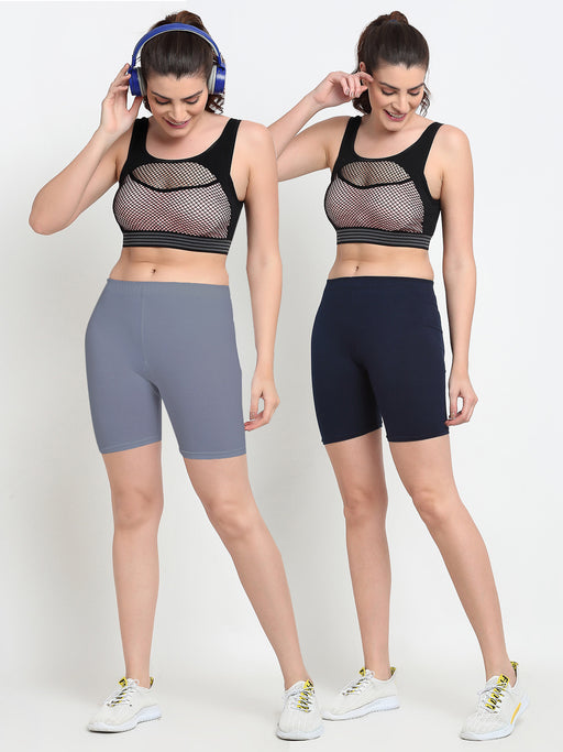 Women Grey Navy Four way super commed lycra Cycling Shorts