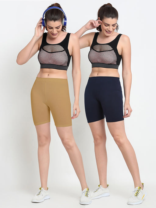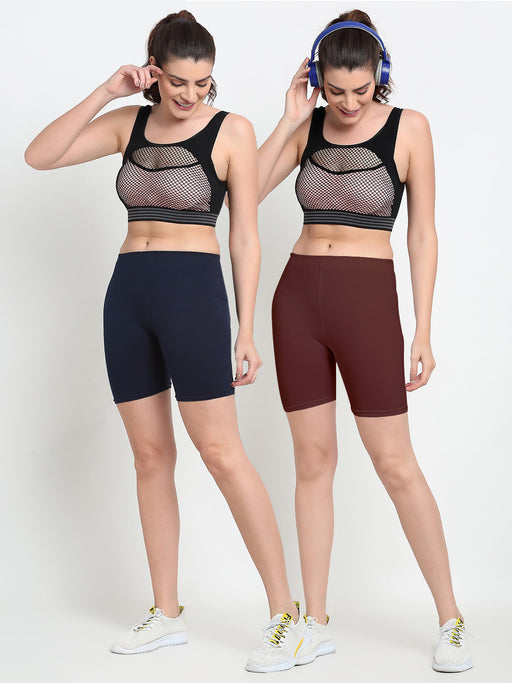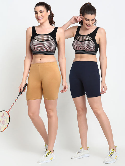 Women Navy Brown Four way super commed lycra Cycling Shorts