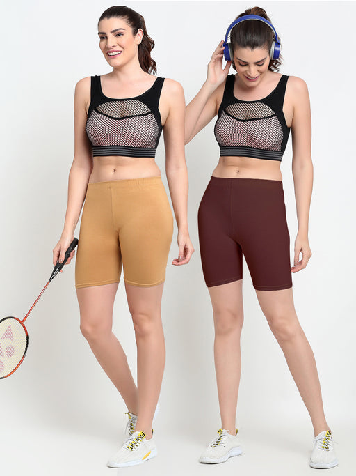 Women Gajri Brown Four way super commed lycra Cycling Shorts