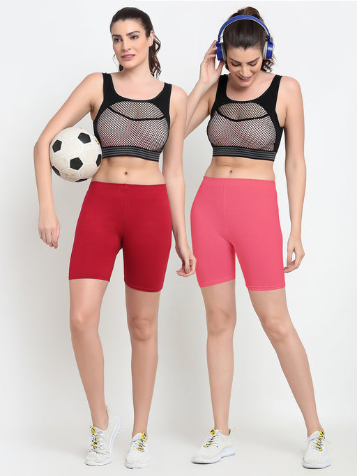 Women Red Grey Four way super commed lycra Cycling Shorts