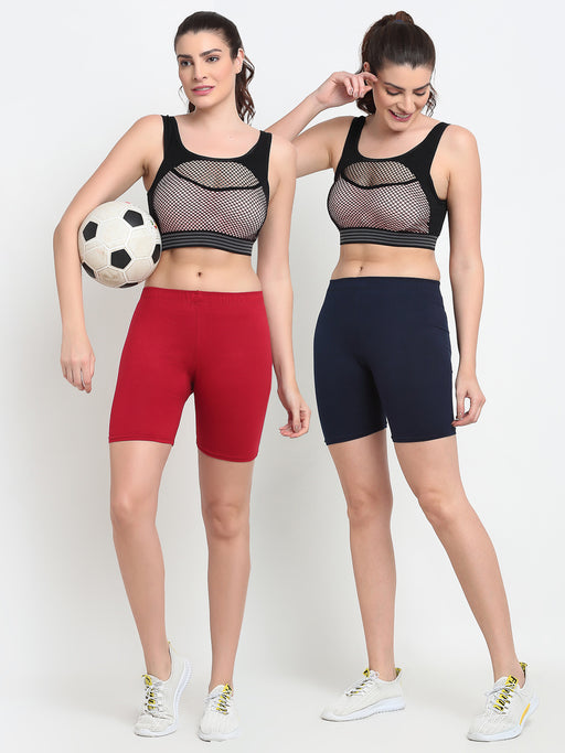 Women Maroon Navy Four way super commed lycra Cycling Shorts