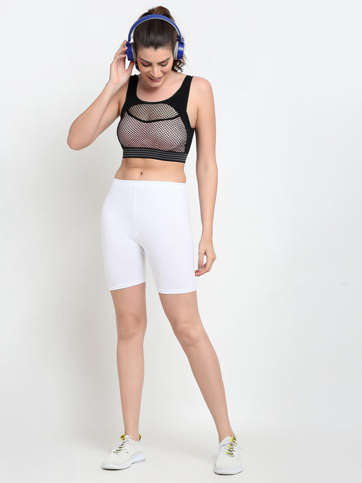 Women White Four way super commed lycra Cycling Shorts