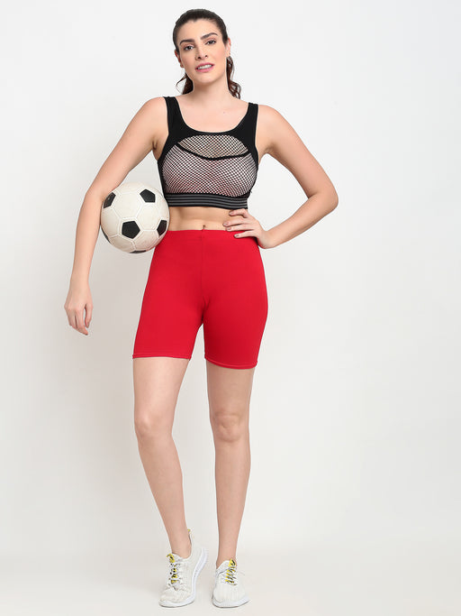 Women Red Four way super commed lycra Cycling Shorts