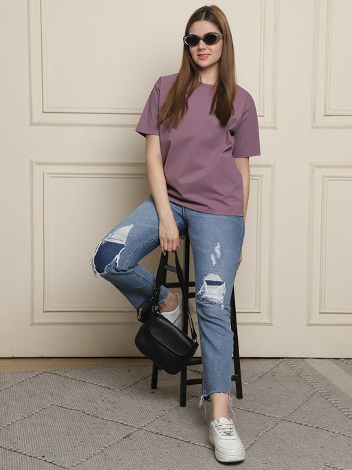 In stockPurple solid casual Tshirt for women, having round neck, short sleeve, cotton fabric and Slip on by Gracit. Size Bust Length To fit waist...